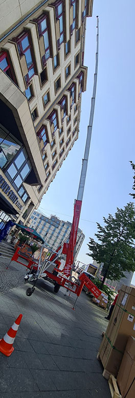 Arbeitsbühnen der Moebellift-Vermietung.Berlin und Hamburg sind perfekt geeignet für Ihr nächstes Bauprojekt. Sind Sie unsicher welche Arbeitsbühne die richtige für Sie ist, dann rufen Sie uns an und wir helfen Ihnen gerne bei der Planung und Durchführung. Unser Mietpark umfasst eine Vielzahl an Arbeitsbühnen. Sollte nicht die passende dabei sein, unterstützen wir Sie gerne mit einem unserer zuverlässigen Partner in der Kranvermietung.